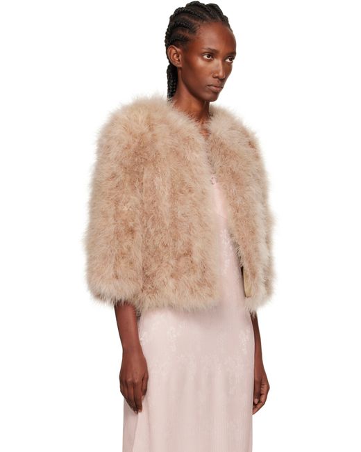 Lightweight turkey feather jacket. · Round neck · Hook-eye closure · Welt pockets · Cropped hem · Three-quarter sleeves · Full silk satin lining Supplier color: Palombaggia Body: 100% turkey feather.