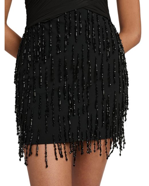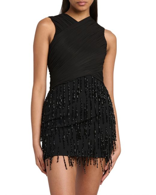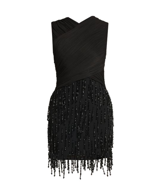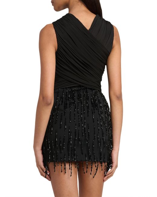 Crafted of an Italian stretch wool blend, Alberta Feretti's sleek minidress elevated the bodice with a gathered, wrapped silhouette. This piece features drop bead embellishments at the pencil skirt creating extra shine and movement. V-neck Sleeveless Wrapped bodice Pulls over 80% wool/16% nylon/4% elastane Dry clean Made in Italy SIZE & FIT Model measurements: 5'10" tall Model is wearing a US size 4. Designer Evening - G24 Consignment > Alberta Ferretti > Saks Fifth Avenue. Alberta Ferretti. Color: Black. Size: 2.