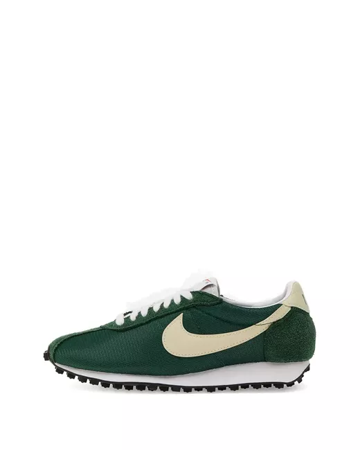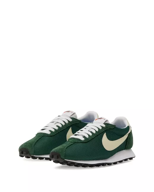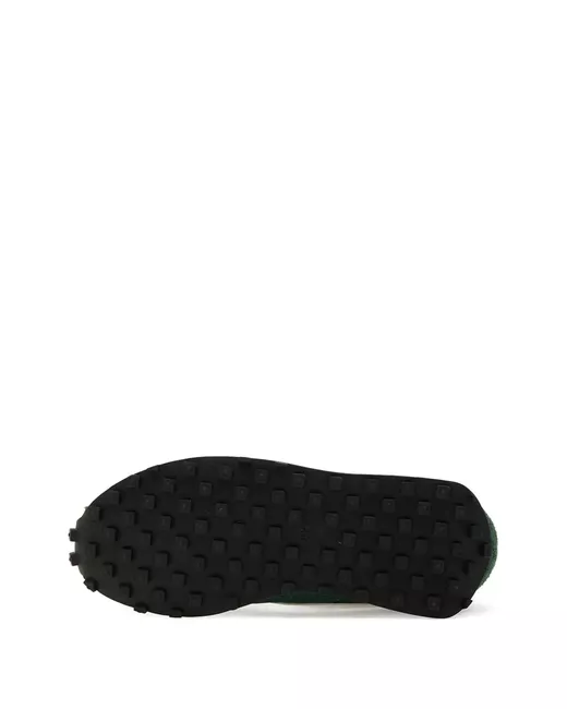 dark green nylon upper suede heel tab cream swoosh waffle sole lace-up fastening