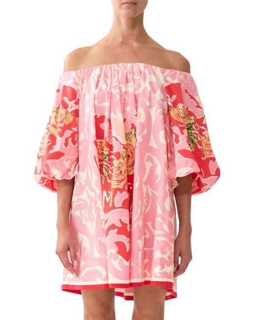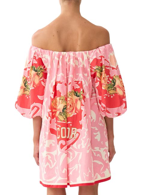 From the Pink Porto Collection. Cut in an A-line silhouette, this off-the-shoulder minidress from Camilla features a bold print and elbow-length puff sleeves. Made with organic cotton Off-the-shoulder neckline Elbow-length puff sleeves, elasticized cuffs Pulls over 100% organic cotton, exclusive of trim Dry clean Imported SIZE & FIT Model measurements: 5'10" tall Model is wearing a US size Small. Modern Collections - Branded Separates > Camilla > Saks Fifth Avenue. Camilla. Color: Pink Porto. Size: XS.