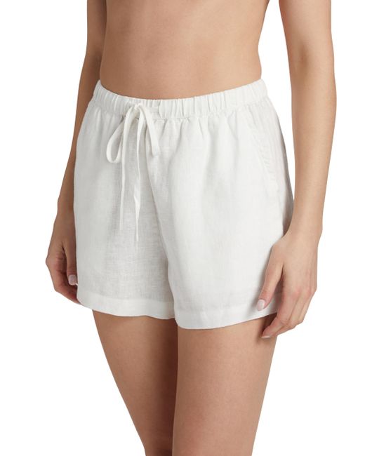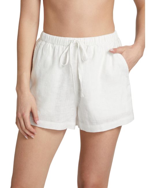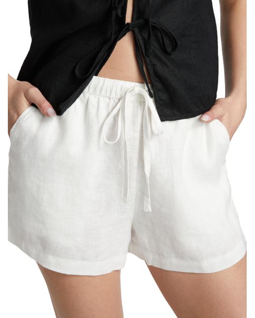 Rails' Jenner drawstring shorts are crafted of linen. Drawstring waistband Side slip pockets 100% linen Dry clean Imported SIZE & FIT Rise: about 12.25" Inseam: about 3" Leg opening: about 13.5" Model measurements: 5'10" tall Model is wearing a US size Small. Contemporary Sportswear - Casual Separates > Rails > Saks Fifth Avenue. Rails. Color: White. Size: XS.