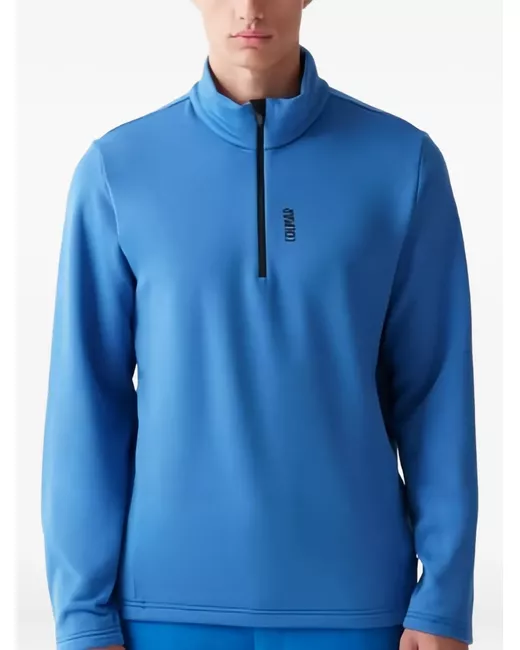 blue half zip fastening turtleneck long sleeves vertical logo