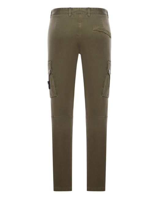 STONE ISLAND military green cargo trousers in cotton twill, logo applique, side zip pockets, regular waist with belt loops and logo button and zip fastening.