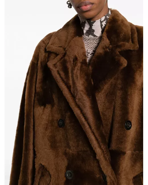 chocolate brown notched lapels double-breasted button fastening long sleeves two side inset pockets ankle-length straight hem