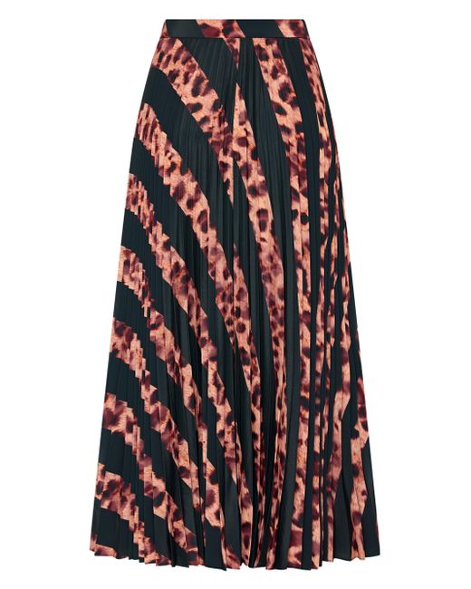 Milly's Otha pleated midi-skirt showcases a striped leopard print. Banded waist Back zip, hook-and-eye closure 100% polyester Lining: 100% polyester Dry clean Imported SIZE & FIT Length about 34.25" Model measurements: 5'10" tall Model is wearing a US size 4. Modern Collections - Milly > Milly > Saks Fifth Avenue. Milly. Color: Black Brown. Size: 0.
