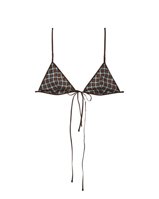 Women's Blue Checked Georgette Bra