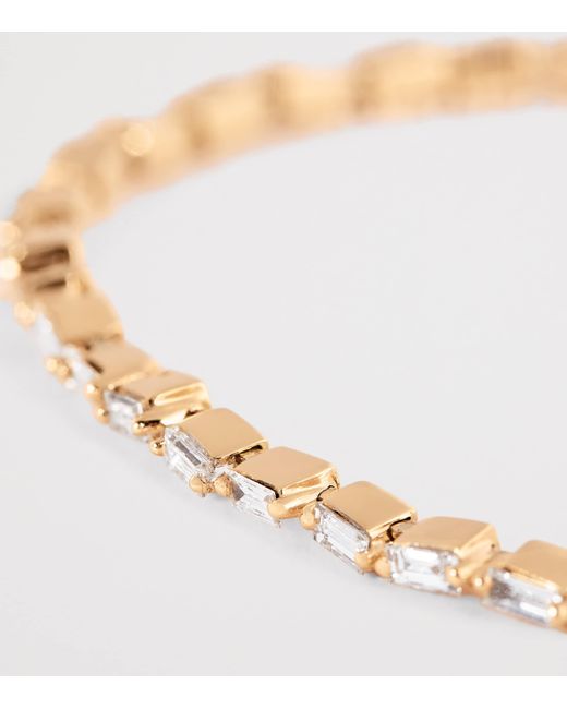 Jewellery mavens are spoilt for choice these days. There's a plethora of brands vying for your attention, each attempting to set itself apart from the rest. One such brand that has achieved a distinct identity by making a particular cut entirely its own is Suzanne Kalan. Celebrating the baguette-cut gem in all its glory, this thin bangle from its Bold collection sees a gathering of white diamonds presented atop a 18-karat rose gold chain.