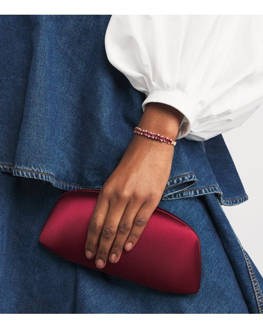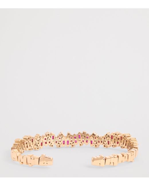 Maintaining the dazzling spirit of Suzanne Kalan's Fireworks collection, the Shimmer collection showcases the brand's unparalleled artistry, where vibrant gemstones take centre stage. This bangle features gleaming rubies - cut in the label's signature baguette style - set slightly off-centre and interspersed with round diamonds for a dynamic, light-catching finish.