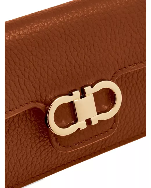 brown grained calfskin Gancini logo-plaque gold-tone key ring card slot