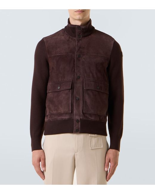 Material: 100% lamb leather (suede). Care instructions: specialist clean. Made in Turkey. Designer color name: Dark Brown. Item color: brown. Details: 100% calf leather. Material II: 100% virgin wool. Lining: 100% polyester. Contains non-textile parts of animal origin. Closure: snap-buttoned front. Cuff: knit, ribbed. Hem: knit, ribbed. Collar: turtleneck. Pockets: flap pockets. Leather.