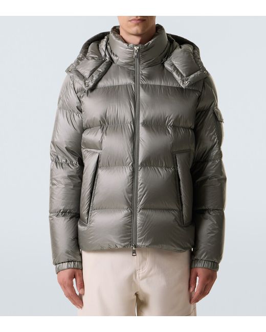 Material: 100% polyamide. Care instructions: machine wash at 30 degrees. Made in Italy. Designer color name: City Skyline. Item color: gray. Lining: 100% polyamide. Filling: 90% down, 10% feathers. Contains non-textile parts of animal origin. Hardware color: silver. Closure: two-way zipped front. Cuff: ribbed. Detachable hood. Pockets: zipped pockets, internal pocket. Drawstring at the hem for adjustable fit.