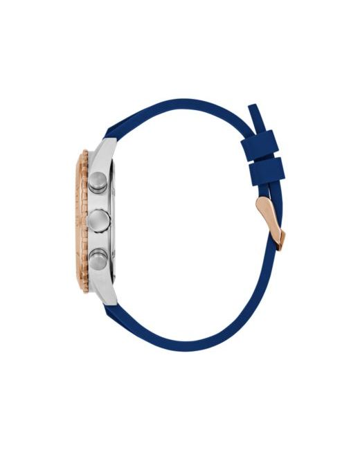 This oversized sport look features a chronograph multi-function movement and a date window on its dial paired with a textured silicone strap with stitching