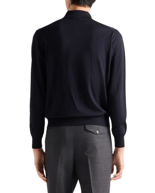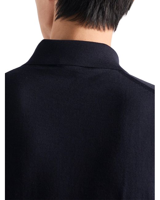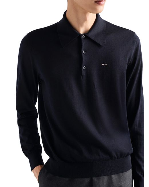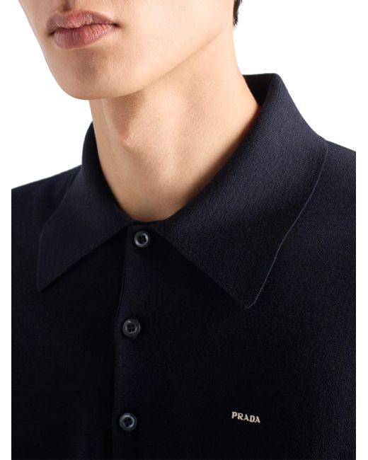 Plain knit Slim fit Ribbed knit collar, cuffs, and hem Raglan shoulder Embroidered logo Three button front closure Imported 100% Fleece Wool - 100% Trochus Niloticus. Lsd Rtw - Prada Rtw > Prada > Saks Fifth Avenue. Prada. Color: Blue. Size: 46.