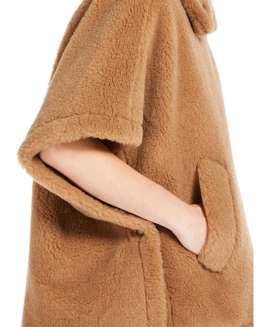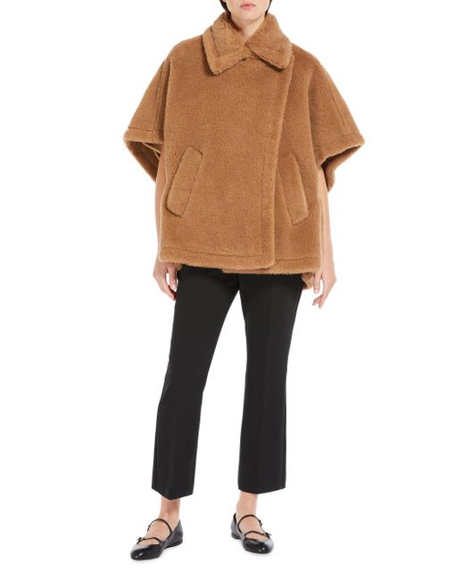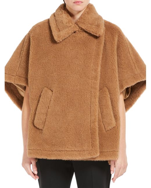 Short cape featuring an enveloping fit and side slits. Cape in camel Teddy fabric, set on a silk base The 2-in-1 collar can either be worn open with the lapels visible or buttoned up Short kimono sleeves Asymmetrical button fastening Diagonal-welt pockets at the sides Viscose lining Jersey fabric 88% camelwool, 12% silk; lining 100% viscose Do not wash; do not bleach; do not tumble dry; do not iron; professionally dry clean perchloroethylene - mild process; do not wet clean Made in Italy. Lsd Handbags - Handbag/accessories Lsd > Max Mara > Saks Fifth Avenue. Max Mara. Color: Camel.