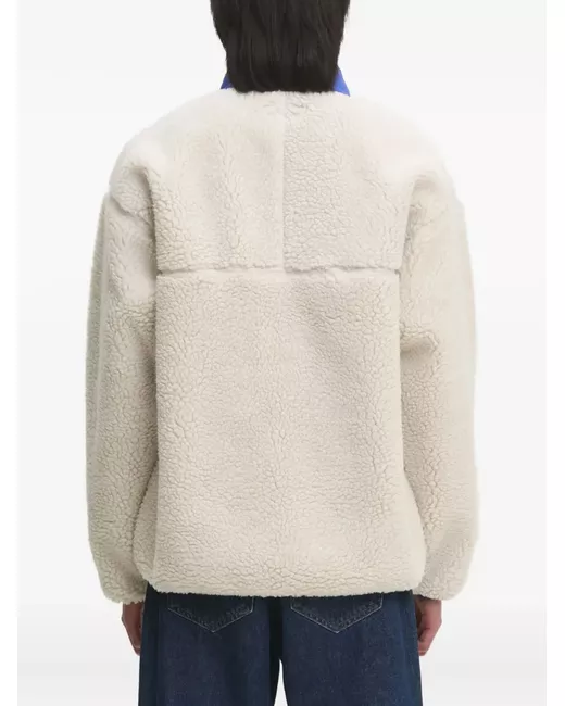 off-white borg fleece texture royal blue panel zip fastening two side zipped pockets turtleneck