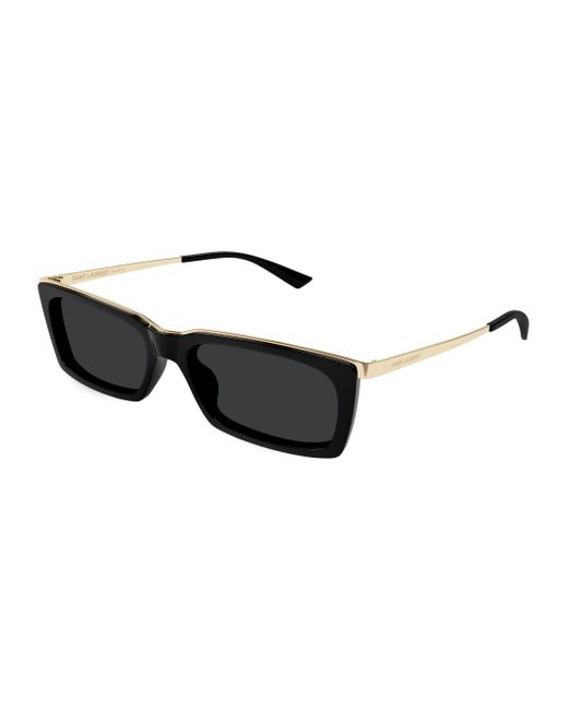 A rectangular-shaped silhouette defines these Saint Laurent sunglasses, accented by logo-engraved metal detailing. Made with recycled acetate 100% UV protection Solid lenses Case and cleaning cloth included Acetate/metal Made in Japan SIZE 57mm lens width 17mm bridge width 145mm temple length. Soft Accessories - Sunglasses > Saint Laurent > Saks Fifth Avenue. Saint Laurent. Color: Gold Black.