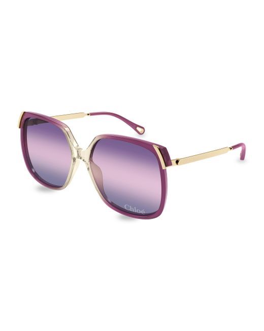 From the Aly Combi Collection. These sunglasses from Chloé are designed with a square silhouette, gradient UV-protective lenses, and logo lettering. 100% UV protection Gradient lenses Includes case and cleaning cloth Acetate and metal Made in Italy SIZE 60mm lens width 15mm bridge width 140mm temple length Please note: Lens replacement is non-optional. ABOUT THE BRAND In 1952, founder Gaby Aghion established Chloé as an alternative to couture, and to appeal to the aspirations and empowerment of women. The label is now led by Creative Director Chemena Kamali, who furthers its signature aesthetic of cool, French-girl style. Soft Accessories - Sunglasses > Chloé > Saks Fifth Avenue. Chloé. Color: Gold Burgundy.