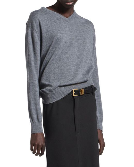 Classic wool knit V-neck Dropped shoulders Long sleeves Gathered cuffs and waistband Ribbed trims Made in Italy Main Material: 100% Wool. Lsd Rtw - Balenciaga Rtw > Balenciaga > Saks Fifth Avenue. Balenciaga. Color: Heather Grey. Size: Small.