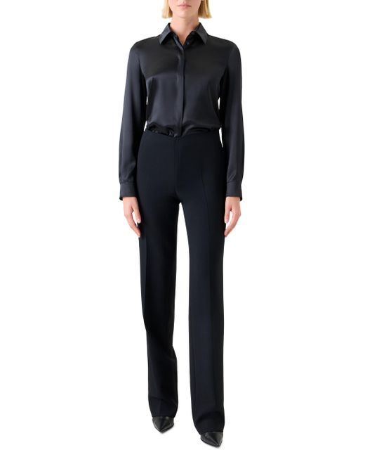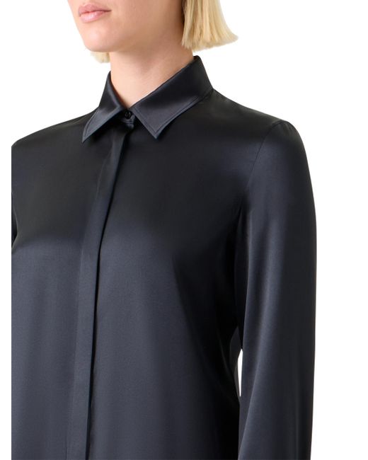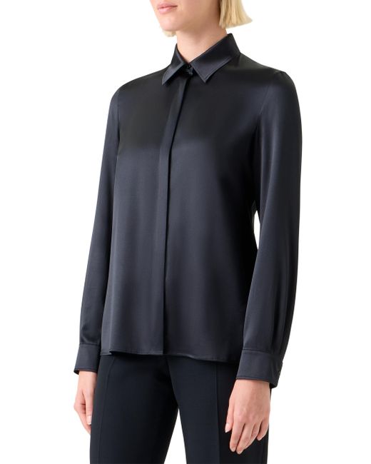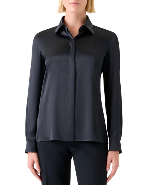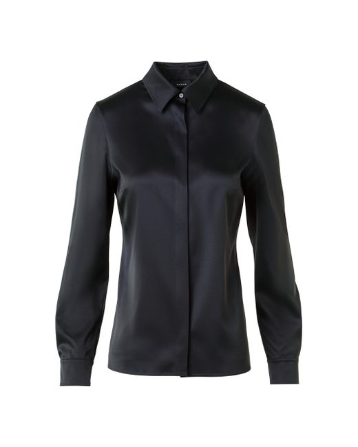 Crafted of stretch silk satin, Akris' fitted shirt is tailored with a timeless spread collar, concealed button-front placket, and long sleeves with button cuffs. Spread collar Long sleeves, button cuffs Concealed button-front closure 92% silk/8% elastane Dry clean Imported SIZE & FIT Model measurements: 5'10" tall Model is wearing a US size 4 ABOUT THE BRAND Founded in 1922 in St. Gallen, Switzerland, the name Akris was derived from founder Alice-Kriemler Schoch's initials. The entrepreneurial designer first started designing dotted aprons with intricate embroidery and soft cotton, which quickly grew into a full line of ready-to-wear. Almost 100 years later, the brand is now helmed by her grandsons. Creative Director Albert Kriemler continues to pay homage to his grandmother through polka-dot lined clothing, luxe fabrications and modern design-which now include sleek accessories like the cult-favorite AI trapezoidal handbag. Advanced European - Akris > Akris > Saks Fifth Avenue. Akris. Color: Black. Size: 6.