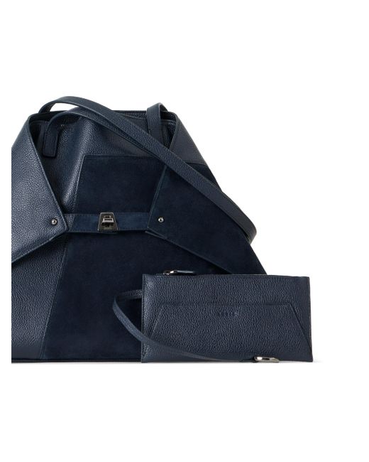 Crafted of rich leather, Akris' Ai medium tote bag features a turn-lock buckle closure that cinches this style into a fold-over trapezoid shape. Two shoulder straps Exterior: one slip pocket Removable zip pouch Protective metal feet Turn-lock closure Leather Imported SIZE About 18.5"W x 12.2"H x 5.1"D ABOUT THE BRAND Founded in 1922 in St. Gallen, Switzerland, the name Akris was derived from founder Alice-Kriemler Schoch's initials. The entrepreneurial designer first started designing dotted aprons with intricate embroidery and soft cotton, which quickly grew into a full line of ready-to-wear. Almost 100 years later, the brand is now helmed by her grandsons. Creative Director Albert Kriemler continues to pay homage to his grandmother through polka-dot lined clothing, luxe fabrications and modern design-which now include sleek accessories like the cult-favorite AI trapezoidal handbag. Handbags - Advanced Designer Handba > Akris > Saks Fifth Avenue. Akris. Color: Denim.