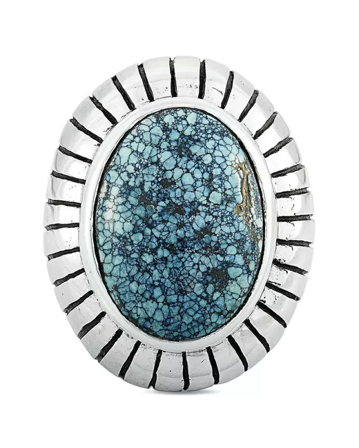 sterling silver polished finish fluted detailing bezel-set oval-cut spotted turquoise signet band Normal everyday use and external agents may reduce the lustre of gemstones and gold surfaces. To maintain, use specific, non-abrasive products specially meant for cleaning jewellery. Condition: EXCELLENT. This previously owned item is in near-perfect condition with no signs of damage or use.
