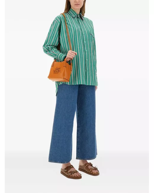 green vertical stripes long sleeves button fastening breast pocket logo detail