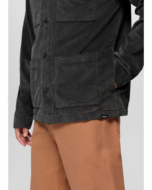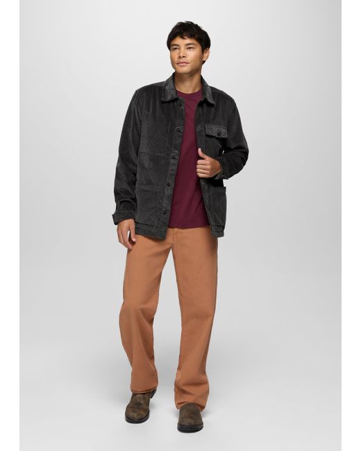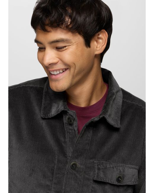 Corduroy meets classic workwear with this versatile flannel-lined chore coat. The Ridgecrest Chore Coat is a soft-yet-structured outer layer to elevate your daily commutes and dinner dates. Designed with 8-wale corduroy from 100% organic cotton and treated with a garment wash, it has a soft flannel body lining for a touch of warmth. Finished with a left chest patch pocket, side seam hand pockets, and double front patch pockets. | Mens prAna Ridgecrest Chore Coat in Black, Size XXL