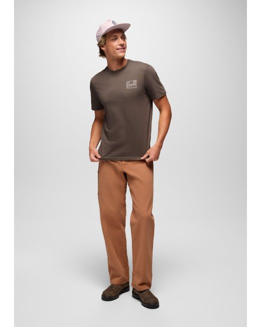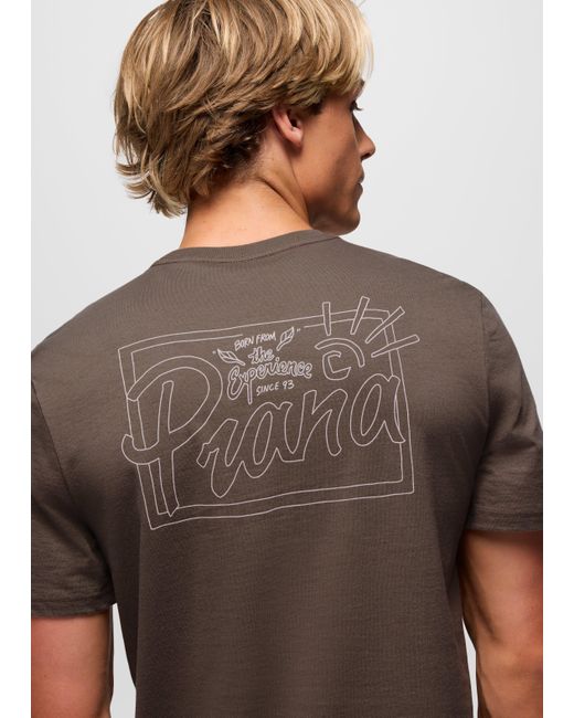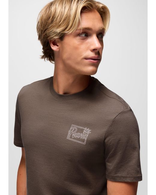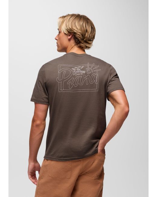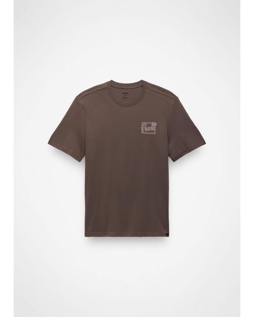 A standard-fit graphic tee made from 100% organic cotton. The prAna Future Passed Graphic Tee is a classic short-sleeve crewneck tee with a standard fit. Crafted with 100% organic cotton, it has original graphics inspired by the daily chase of adventure on the left chest and center back. | Mens prAna Future Passed Graphic Tee in Brown, Size Medium