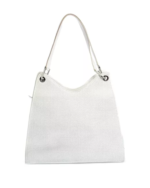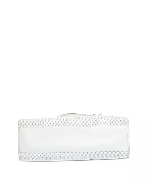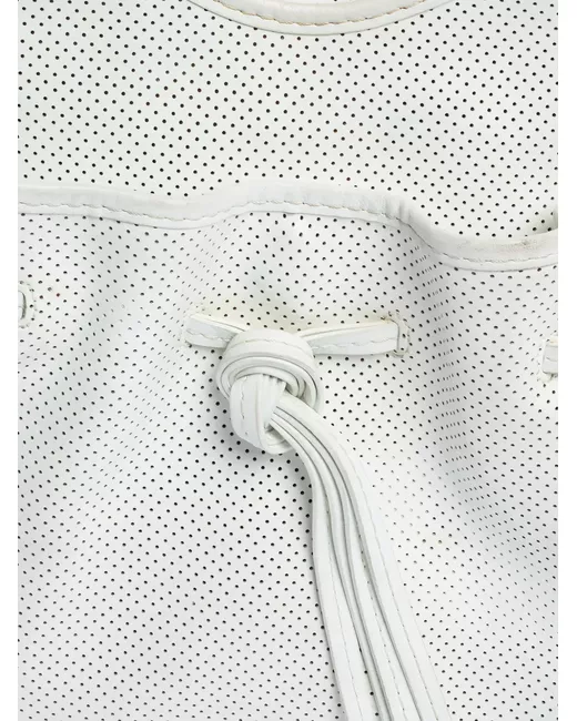 white leather perforated detailing drawstring closure silver tone hardware leather tassel Condition: GOOD. This previously owned and used item is in good condition with minimal signs of use. This may include fading of material or plating and scratches.