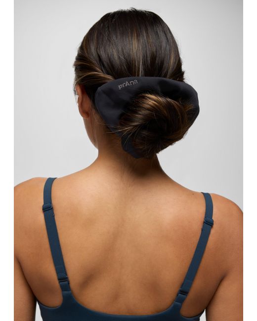 Our buttery Shea Soft fabric in a sandwash oversize scrunchie for every day. As comfortable on the wrist as it is in the hair, our Shea Soft Scrunchie is made with our buttery-soft Shea fabric from a TENCEL™ modal and recycled polyester blend. | Gender Neutral prAna Shea Soft Scrunchie in Black, Size One Size