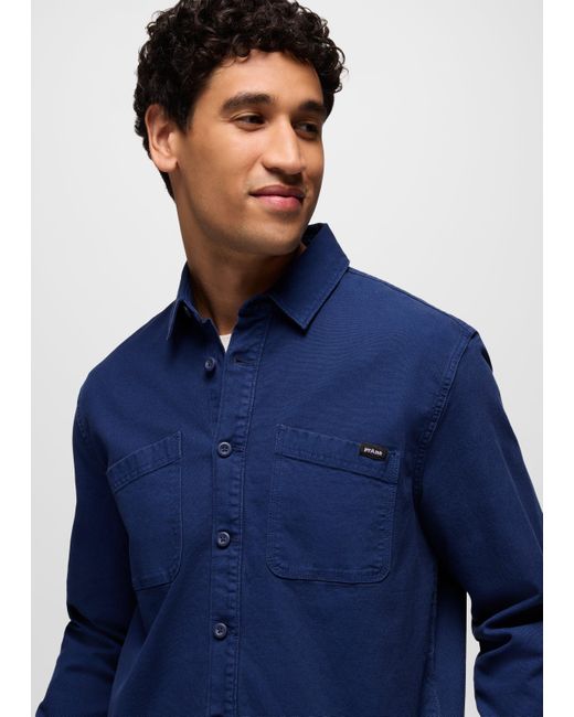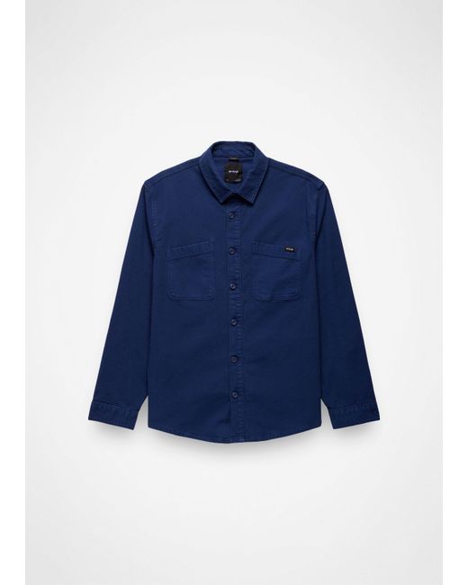 Relaxed-fit unlined overshirt in a durable organic cotton-blend stretch canvas with a well-loved look. The Rock Ridge Overshirt is an everyday layering essential with workwear-inspired style. Made with a durable stretch canvas from organic and recycled cotton, this button-up is perfect for dinner dates or project-filled weekends. We’ve treated it with a one-of-a-kind garment dye and enzyme softener wash for an elevated hand feel. | Mens prAna Rock Ridge Overshirt in , Size Small
