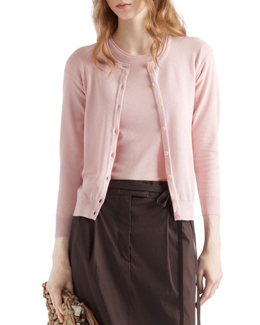 Short sleeves Plain knit Slim fit Semi-raglan shoulder Ribbed knit sleeve trim and hem Knit triangle logo Imported 38% Cotton, 62% Silk. Lsd Rtw - Prada Rtw > Prada > Saks Fifth Avenue. Prada. Color: Pink. Size: 0.