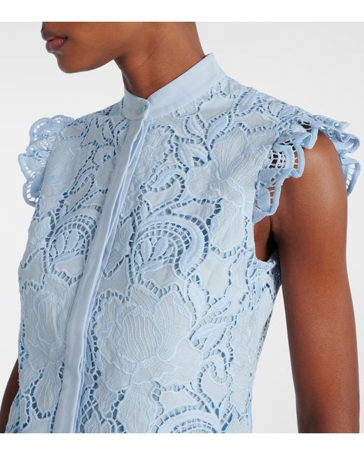 Material: 60% polyester, 40% cotton. Care instructions: dry clean. Made in China. Designer color name: Dream Blue. Item color: blue. Lining: 100% cotton. Collar: band. Closure: concealed buttoned front. Cotton.