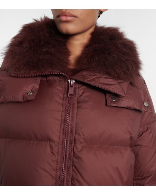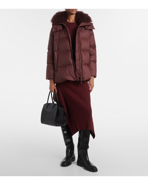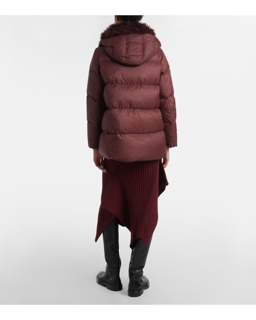 Material: 100% polyamide. Care instructions: specialist clean. Made in France. Designer color name: Chianti. Item color: burgundy. Details: 100% lambswool. Material II: 68% polyester, 26% viscose, 6% elastane. Filling: 95% down, 5% feathers. Pockets: buttoned pockets. Closure: two-way zipped front. Drawstring at the hem for adjustable fit. Detachable hood. Contains non-textile parts of animal origin.