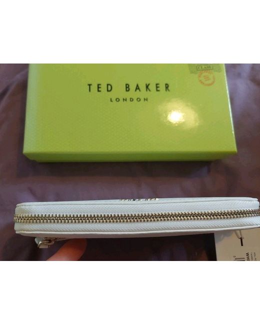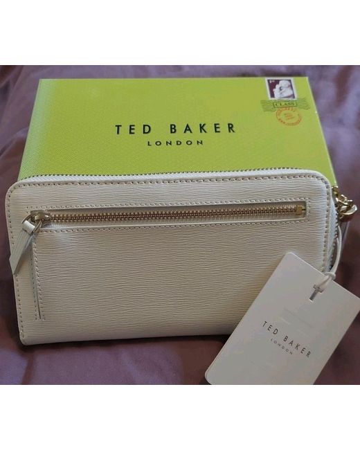 Ted Baker matinee purse with zip around closure, tags and box. Box is slightly faded on one side due to sun exposure. W. 20cm H. 11cm