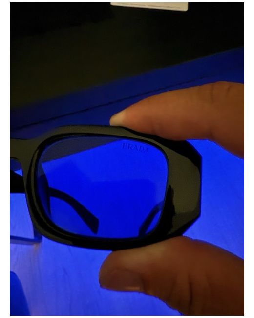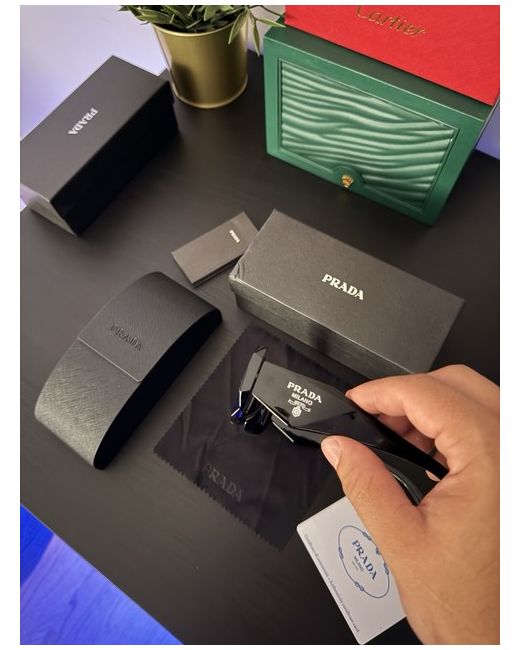 The product is a pair of black Prada sunglasses for women, featuring a geometric style with a square frame and tinted black plastic lenses. The sunglasses offer UV400 protection and are made in Italy. The Prada PR17WS model is a designer piece with a sleek black acetate frame, showcasing the brand's luxury and high-quality craftsmanship. Perfect for adding a touch of sophistication to any outfit, these Prada sunglasses are a fashionable and stylish accessory for any woman's wardrobe.
