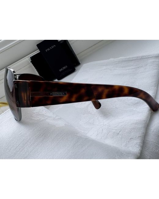 The Genuine PRADA pilot shape Unisex Sunglasses are a stylish and high-quality aviator shape accessory for both men and women. Made in Italy with a combination of metal and plastic materials, these sunglasses feature a gradient tinted brown lens for UV protection up to 400nm. The designer theme and rounded aviator style add a touch of sophistication to any outfit. The gunmetal frame with tortoiseshell sides gives these sunglasses a modern and elegant look, making them looking a fashion statement.