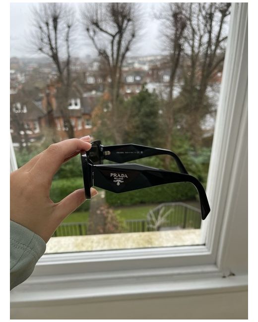 Authentic Prada rectangle sunglasses, black with dark grey on the lens. Comes with original case.