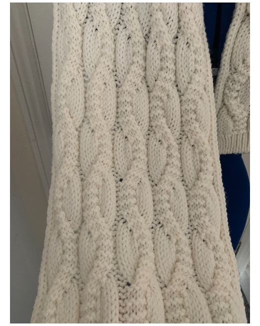 Beautiful white 100% woollen scarf featuring braids pattern along the full length of the scarf. Size : 180 cm long x 25 cm wide.