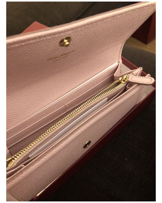 Elevate your accessory game with this beautiful Salvatore Ferragamo wallet. Crafted in a stunning pink shade, this wallet is perfect for the modern woman who loves fashion. It features the iconic Salvatore Ferragamo logo on the front, showcasing your style and sophistication. This wallet is perfect for carrying your everyday essentials, with enough space for your cards, cash and other small items. Whether you're heading to work, running errands or going out for the evening, this wallet is the perfect addition to your outfit.