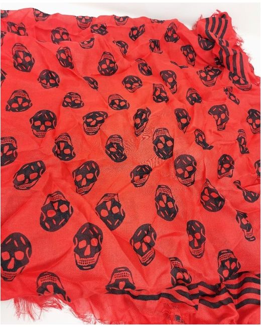 Women's Red Black Skull Patterned Scarf 120cm X 140cm