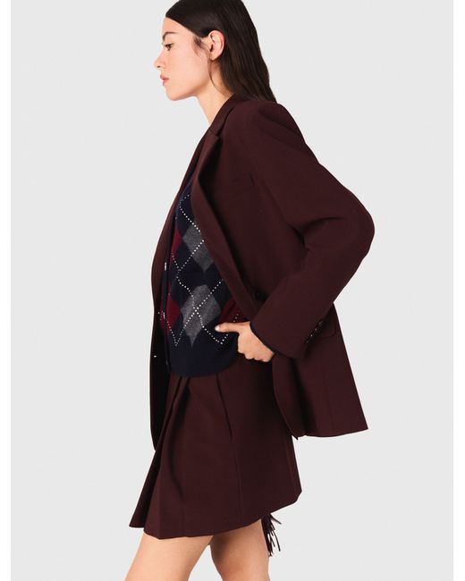 Maje wool Long-sleeved suit jacket Button fastening and chain link buckle belt Two flap pockets and back vent Tailoring is in this season, bringing style with timeless pieces reimagined. This belted suit jacket creates a defined waist and adds character to the silhouette. With long sleeves, a chain link buckle belt at the waist, and flap pockets, it offers a multitude of possibilities: chic with straight trousers, more casual with faded jeans.. This