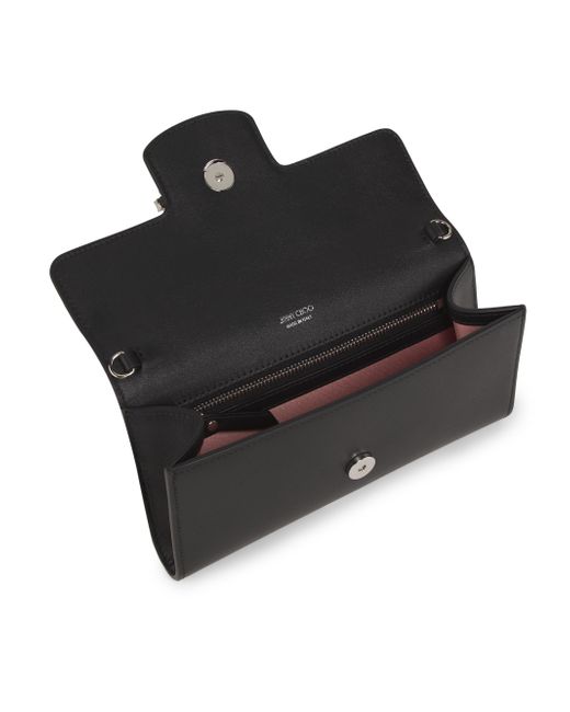 Crafted of luxe Italian leather, Jimmy Choo's Bing chain wallet highlights the envelope-style silhouette with an embellished detail and stamped logo. Removable chain strap Interior zip pocket and card holders Flap top, magnetic closure Authenticity card included Dust bag included Leather Made in Italy SIZE About, 7.5"W x 4"H x 1.5"D Strap: 20" drop Weight, about 0.80lbs ABOUT THE BRAND Designer Jimmy Choo made his start with a made-to-order shoe boutique in London's East End for private clients, including royals, celebrities and socialites. Building a loyal following, the designer officially launched the brand in 1996, with Choo's niece, Sandra Choi, coming on board as creative director. Today, the label continues to deliver finely crafted, ultra-glamorous accessories, including handbags and sunglasses. Handbags - Designer Handbag Multi > Jimmy Choo > Saks Fifth Avenue. Jimmy Choo. Color: Black Silver.