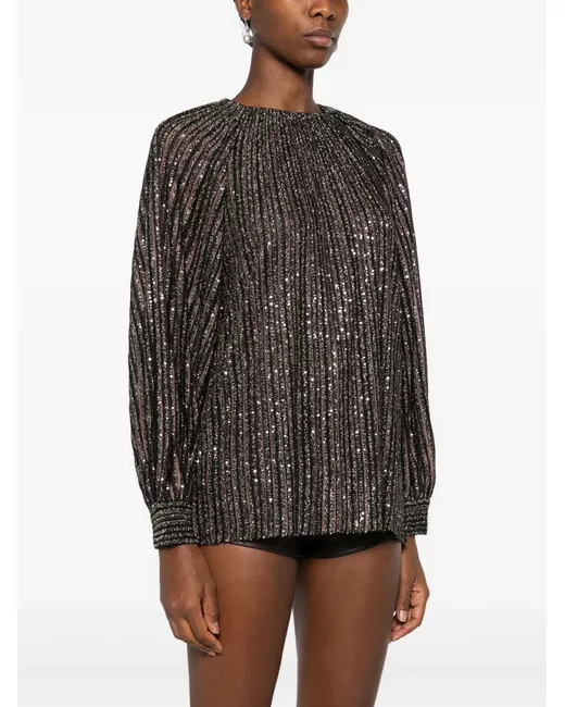Sequin-embellished Striped Metallic Crochet-knit Blouse