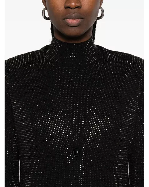 black sequin embellishment v-neck long sleeves button fastening straight hem