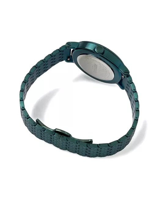 teal ombre dial 36mm case size round case zigzag pattern dial quartz movement textured crown buckle fastening This item comes with a standard one-year warranty from the boutique.