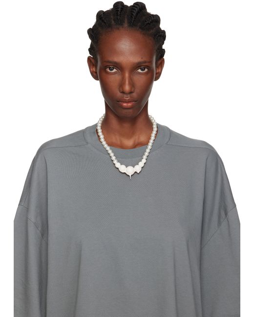 Beaded faux-pearl necklace in white. · Rubberized coating in pink at drop · Adjustable lobster-clasp fastening · L19.5 Supplier color: Silver/Light pink