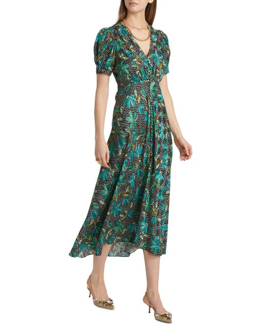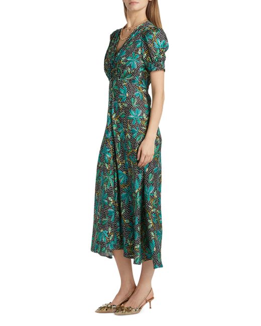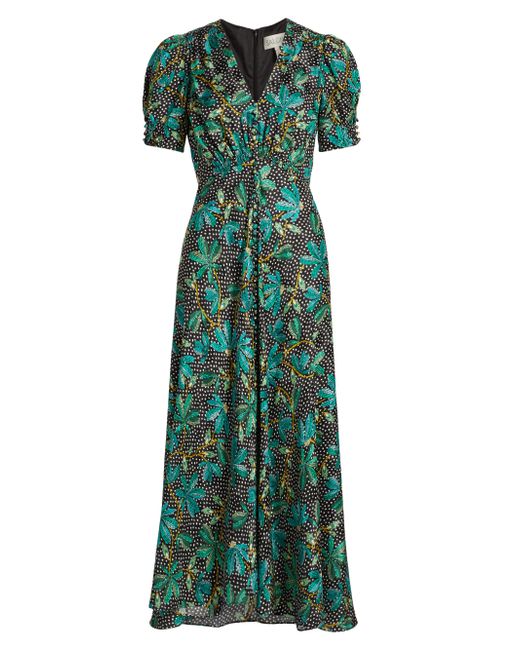 Lea Polka-dot Floral-print Silk-jacquard Midi Dress