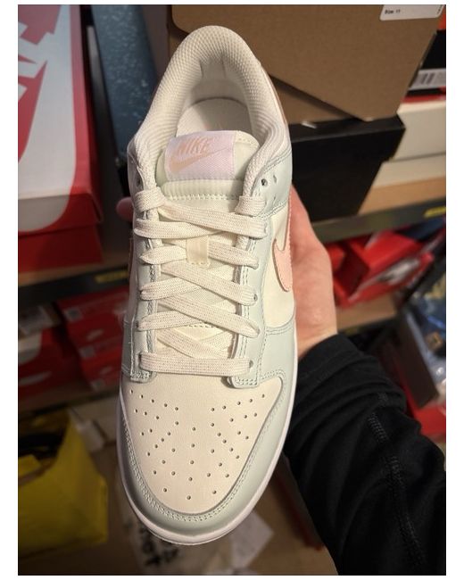 The product is a pair of Nike Dunk Low sneakers in a barely green colour, designed for women in UK size 5.5 (US size 8, EU size 38.5). These trainers are part of the Nike Dunk product line, known for their stylish yet comfortable design. The vibrant green hue adds a pop of colour to any outfit, making them a versatile choice for both casual and athletic looks. Perfect for those looking to make a statement with their footwear choice.