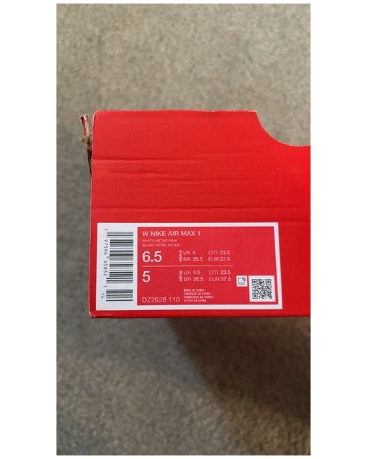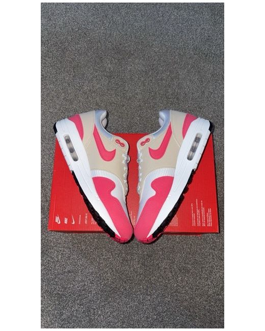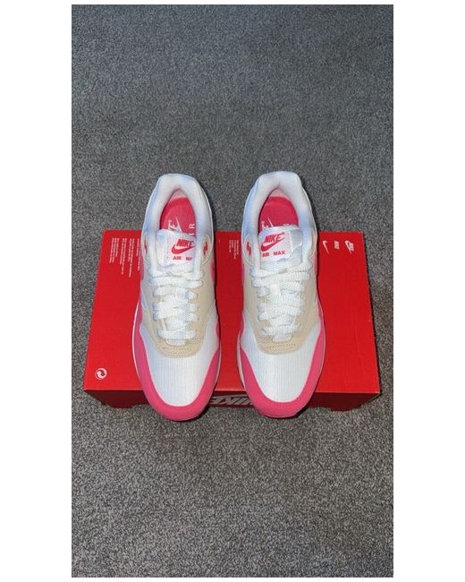 The W Nike Air Max 1 trainers in white and aster pink, designed for women in UK size 4 (US 6.5), offer a stylish and comfortable option for casual occasions. With a low top silhouette, lace-up closure, and rubber outsole, these sneakers feature the iconic Nike Air Max design. Perfect for the summer season, these trainers also boast the signature Nike logo as accents, making them a fashionable choice for everyday wear. Made in China, these standard-width shoes combine quality craftsmanship with a trendy sneaker style. Box has no lid